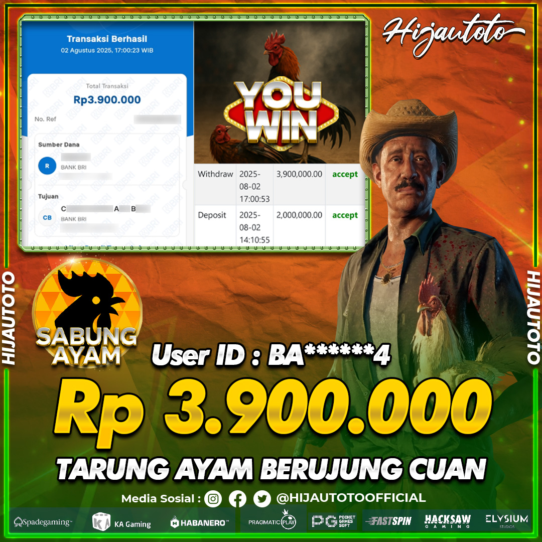 HIJAUTOTO juga menyediakan permainan sabung ayam online dengan sistem taruhan transparan dan live streaming langsung. Rasakan keseruan bertaruh dalam suasana pertandingan yang nyata dan dapatkan kesempatan menang yang adil.