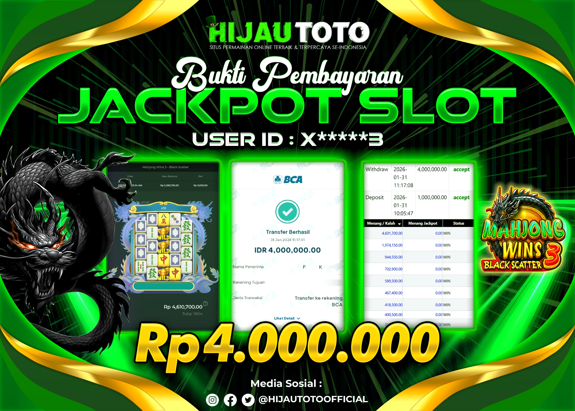HIJAUTOTO adalah pilihan terbaik bagi Anda yang mencari platform judi online terpercaya dengan modal terjangkau, ragam permainan lengkap, bonus menguntungkan, dan layanan profesional 24 jam. Semua kebutuhan hiburan dan keuntungan Anda terpenuhi dalam satu tempat.