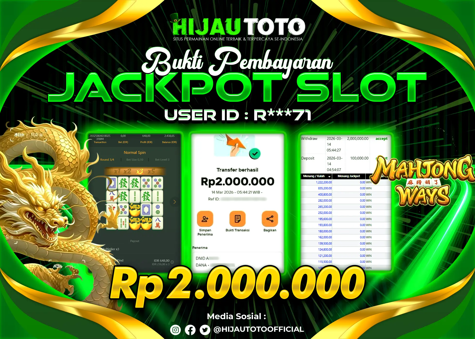 Bergabung dengan HIJAUTOTO sangat mudah dan cepat. Cukup lakukan pendaftaran dengan data lengkap, lakukan deposit minimal Rp5.000 melalui berbagai metode termasuk QRIS, dan mulai bertaruh dengan minimal taruhan Rp100. Dapatkan juga bonus new member 100% untuk modal bermain lebih besar.