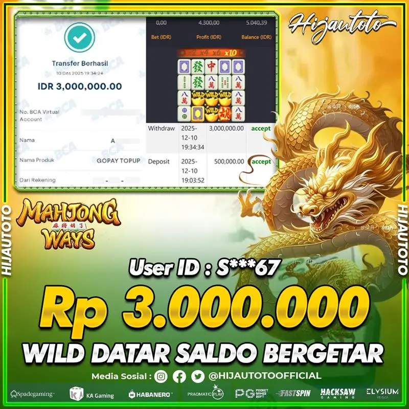 Karena berhasil memenangkan Rp.Rp.3.502.000 dari permainan seru SLOT MAHJONG WAYS di HIJAUTOTO! πŸ’°πŸ’Έ