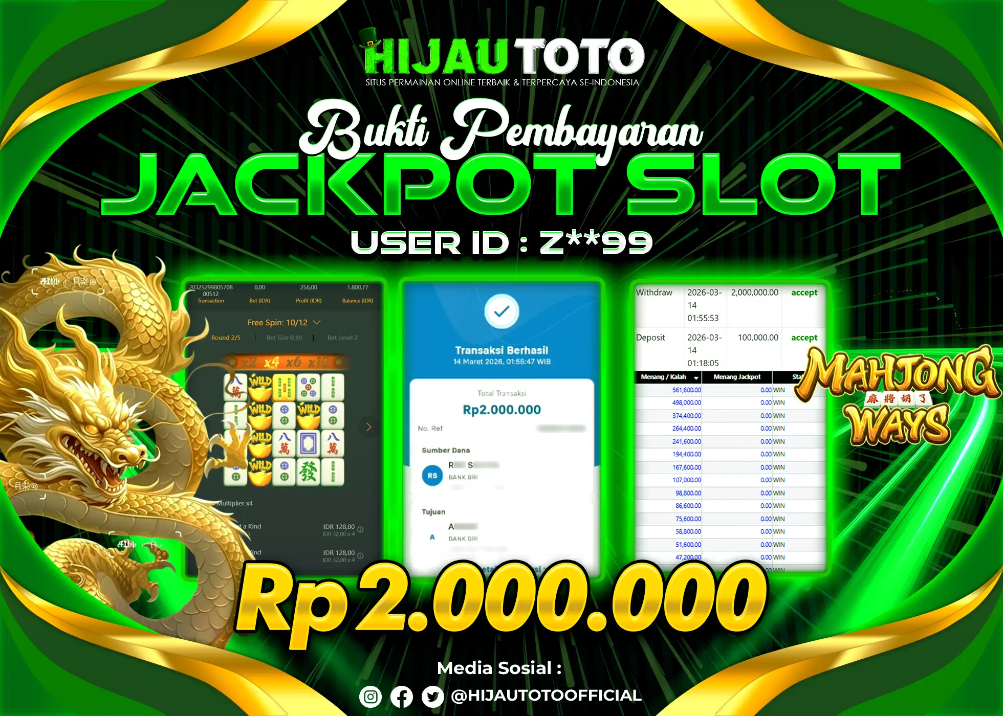 Selamat datang di HIJAUTOTO, tempatnya seru-seruan dan cuan besar! Mulai main cukup dengan modal Rp5.000 aja, taruhan super murah dari Rp100 perak! Mau main slot yang penuh warna? Atau togel dari 20 pasaran paling hits? Atau mungkin tembak ikan yang bikin deg-degan? Tenang, ada juga taruhan bola, sabung ayam, dan live casino yang bikin suasana makin hidup! Daftar sekarang dan dapetin bonus new member 100% langsung, biar modalmu makin tebal. Deposit gampang banget, bisa pakai QRIS, dan kalau butuh bantuan, customer service kita siap 24 jam nonstop. Jadi, tunggu apa lagi? Yuk, gabung dan bawa pulang kemenangannya cuma di HIJAUTOTO!