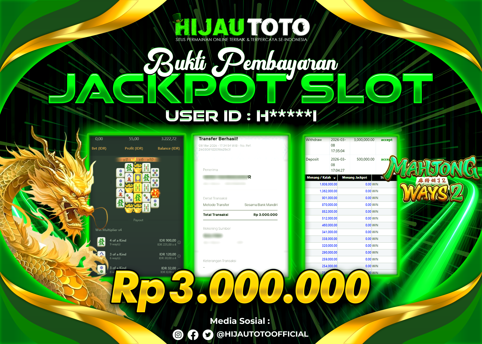 Selamat datang di HIJAUTOTO, tempatnya seru-seruan dan cuan besar! Mulai main cukup dengan modal Rp5.000 aja, taruhan super murah dari Rp100 perak! Mau main slot yang penuh warna? Atau togel dari 20 pasaran paling hits? Atau mungkin tembak ikan yang bikin deg-degan? Tenang, ada juga taruhan bola, sabung ayam, dan live casino yang bikin suasana makin hidup! Daftar sekarang dan dapetin bonus new member 100% langsung, biar modalmu makin tebal. Deposit gampang banget, bisa pakai QRIS, dan kalau butuh bantuan, customer service kita siap 24 jam nonstop. Jadi, tunggu apa lagi? Yuk, gabung dan bawa pulang kemenangannya cuma di HIJAUTOTO!