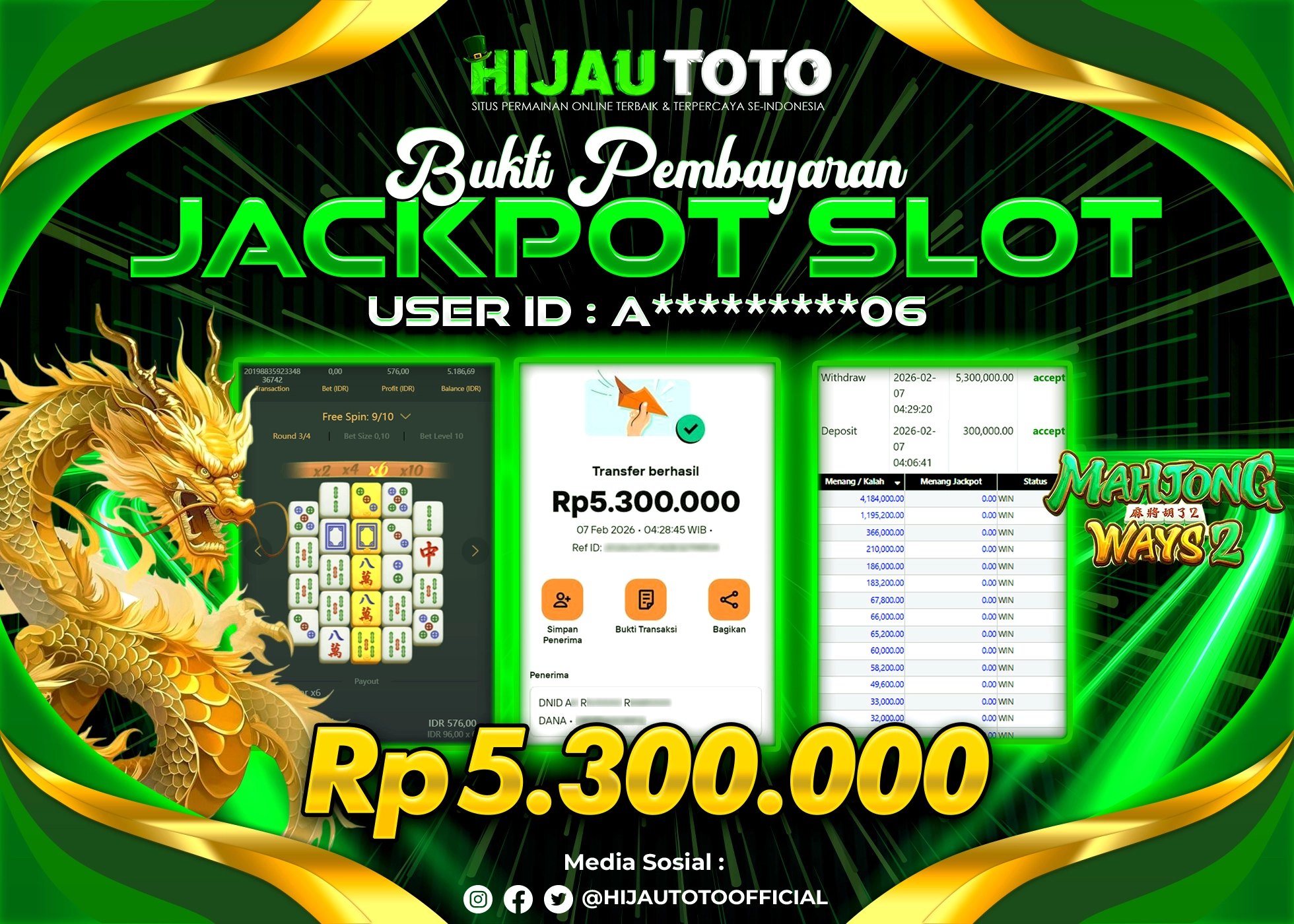 Selamat Kepada Member HIJAUTOTO A*********06 Telah Jackpot Di SLOT MAHJONG WAYS 2