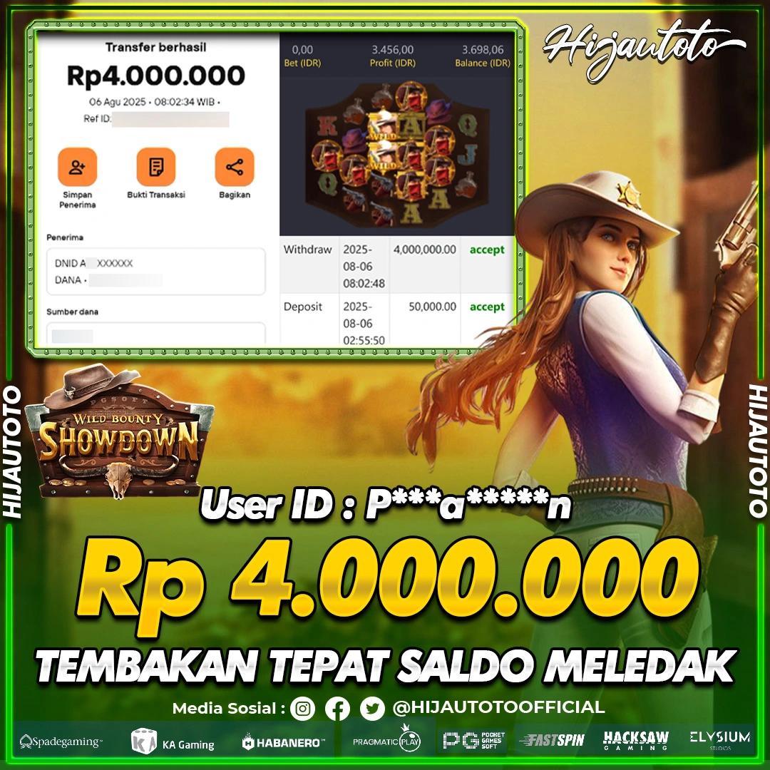 Selamat Kepada Member HIJAUTOTO P***A*****N Telah Jackpot Di SLOT WILD BOUNTY SHOWDOWN