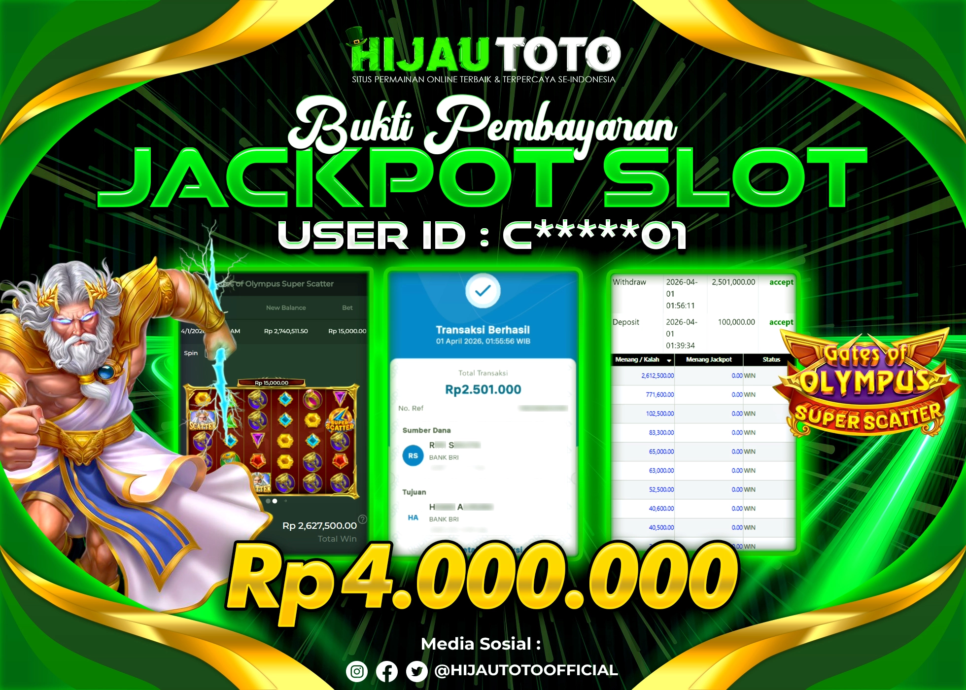 Selamat Kepada Member HIJAUTOTO C*****01 Telah Jackpot Di SLOT GATES OF OLYMPUS SUPER SCATTER