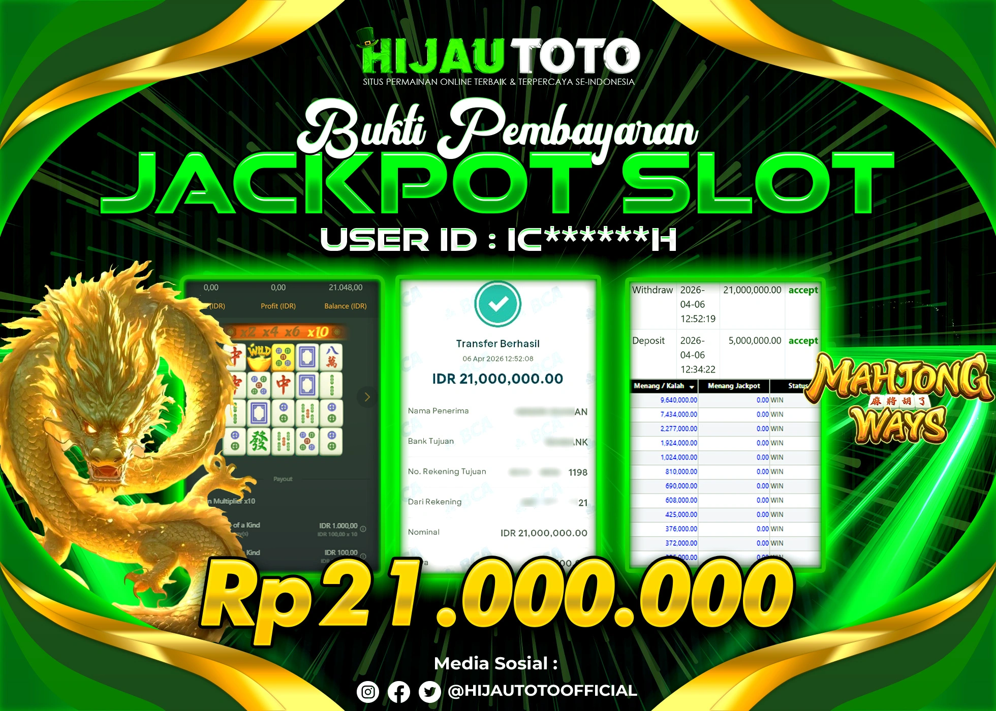 HIJAUTOTO adalah pilihan terbaik bagi Anda yang mencari platform judi online terpercaya dengan modal terjangkau, ragam permainan lengkap, bonus menguntungkan, dan layanan profesional 24 jam. Semua kebutuhan hiburan dan keuntungan Anda terpenuhi dalam satu tempat.