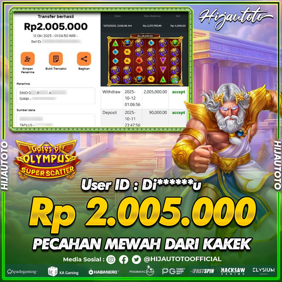 Karena berhasil memenangkan Rp.Rp.2.700.000 dari permainan seru SLOT LUCKY NEKO di HIJAUTOTO! πŸ’°πŸ’Έ