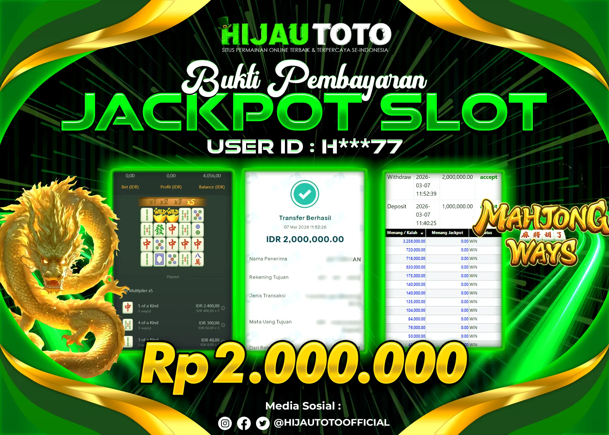 HIJAUTOTO adalah pilihan terbaik bagi Anda yang mencari platform judi online terpercaya dengan modal terjangkau, ragam permainan lengkap, bonus menguntungkan, dan layanan profesional 24 jam. Semua kebutuhan hiburan dan keuntungan Anda terpenuhi dalam satu tempat.